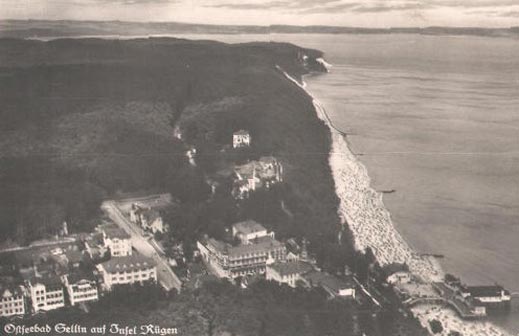 Fliegeraufnahme um 1940, alleinstehend im Wald die heutige Villa Rex; gegenüber wurde 2007 die "Bernsteinperle" erbaut!