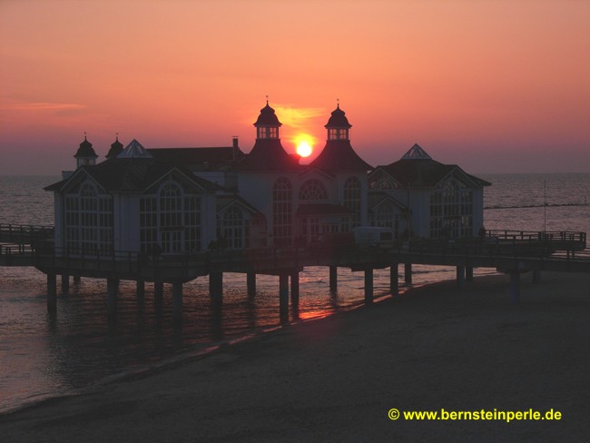 Seebrücke beim Sonnenaufgang am 28. März um 05:46 Uhr.